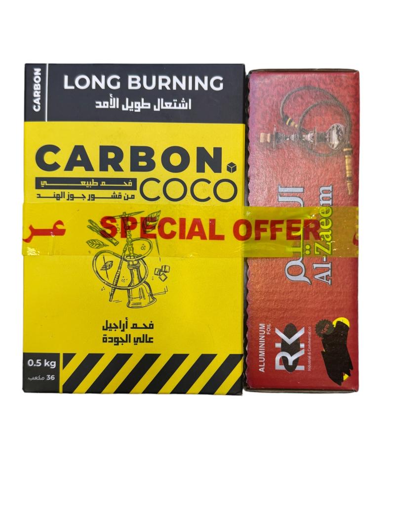 فحم جوز الهند للأركيلة 0.5 مع ورق ألومنيوم - Hookah Coconut Charcoal 0.5 with Aluminum Foil